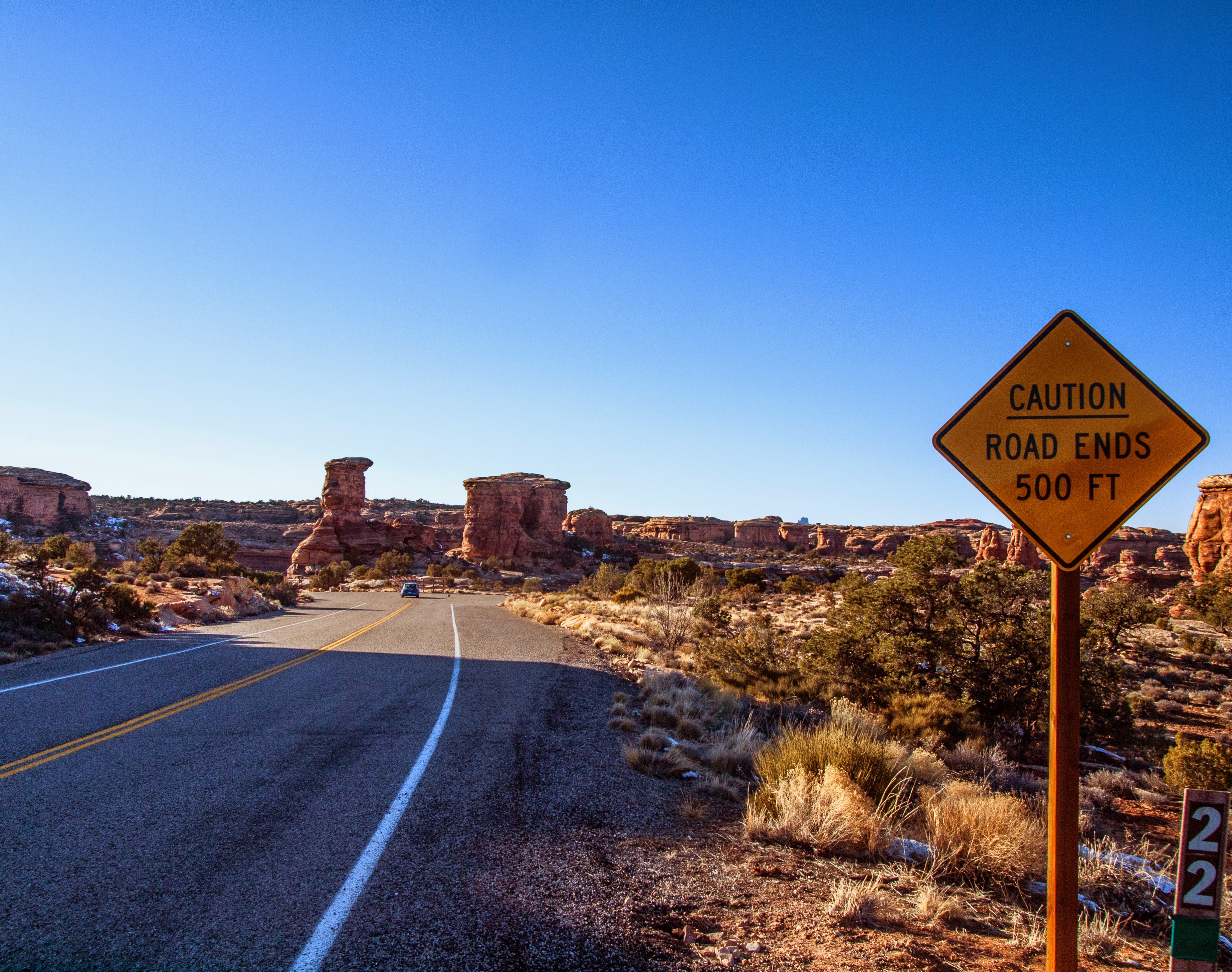 There it was: the end of the road. Nowhere to turn but around. Nowhere to go but back. A road to nowhere in the middle of the desert.