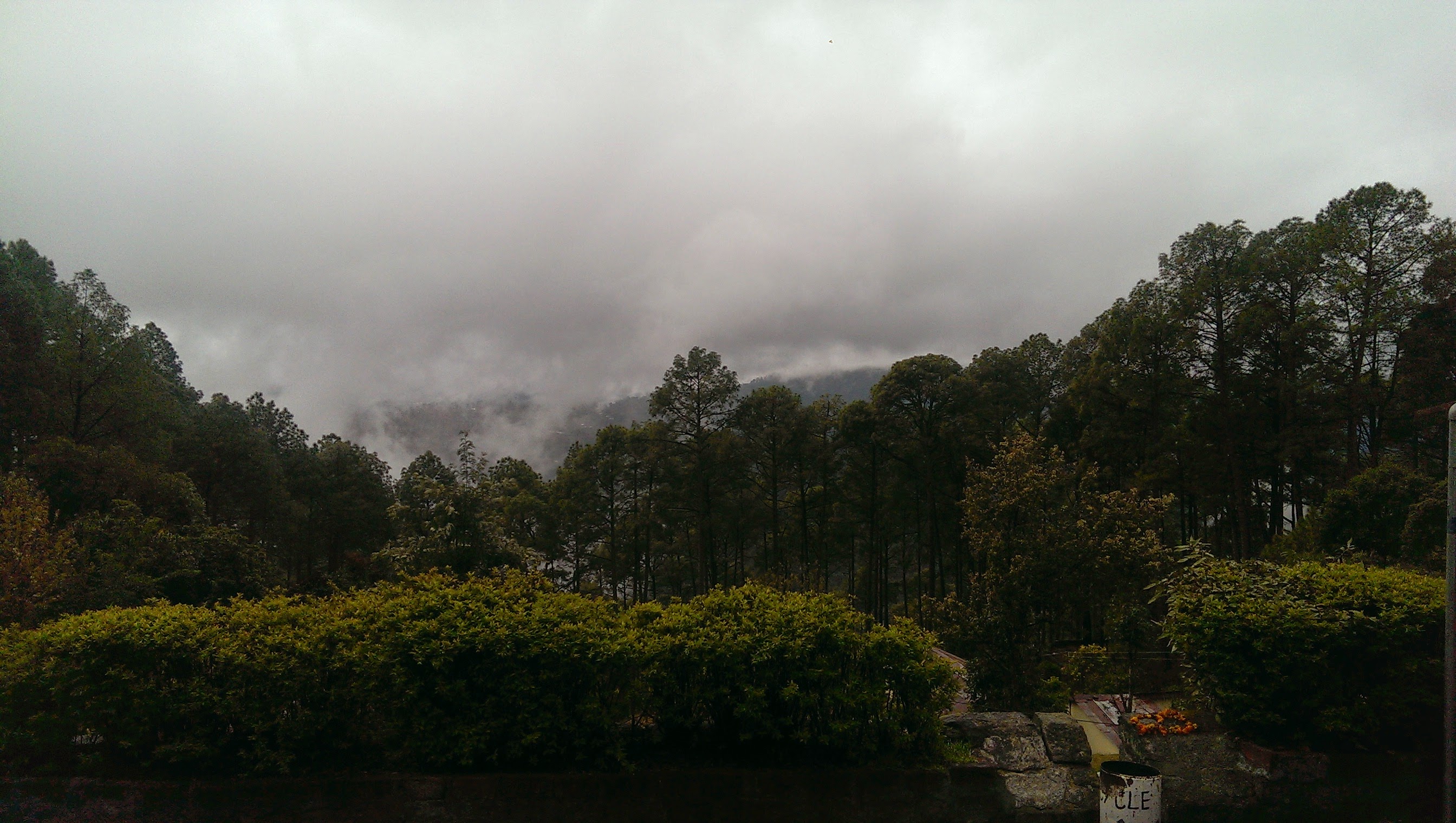 A grey dawn greeted me with a crescent moon hanging to the left of the red roof. The birds trilled as loud as if the sun shined bright. Mist came and went like a ventriloquist pulling a blanket. White and pink blossoms specked the terraces, and white daisies coated the mossy wall that held the cottage up above the terraces. Flocks of birds, green brown gold yellow red, flew above me. The sun finished rising tinting the sky pink but still hidden by the hill top above me.