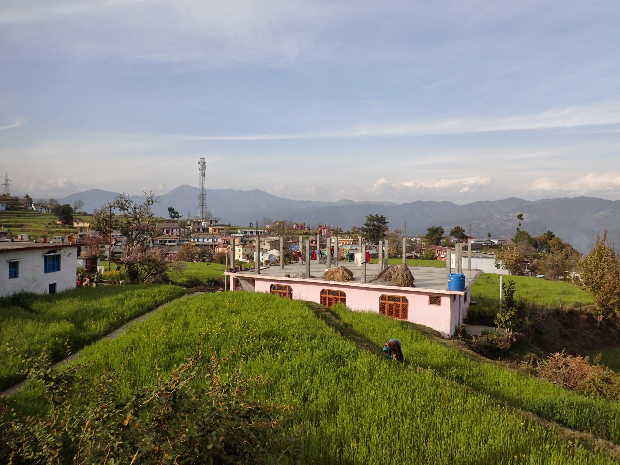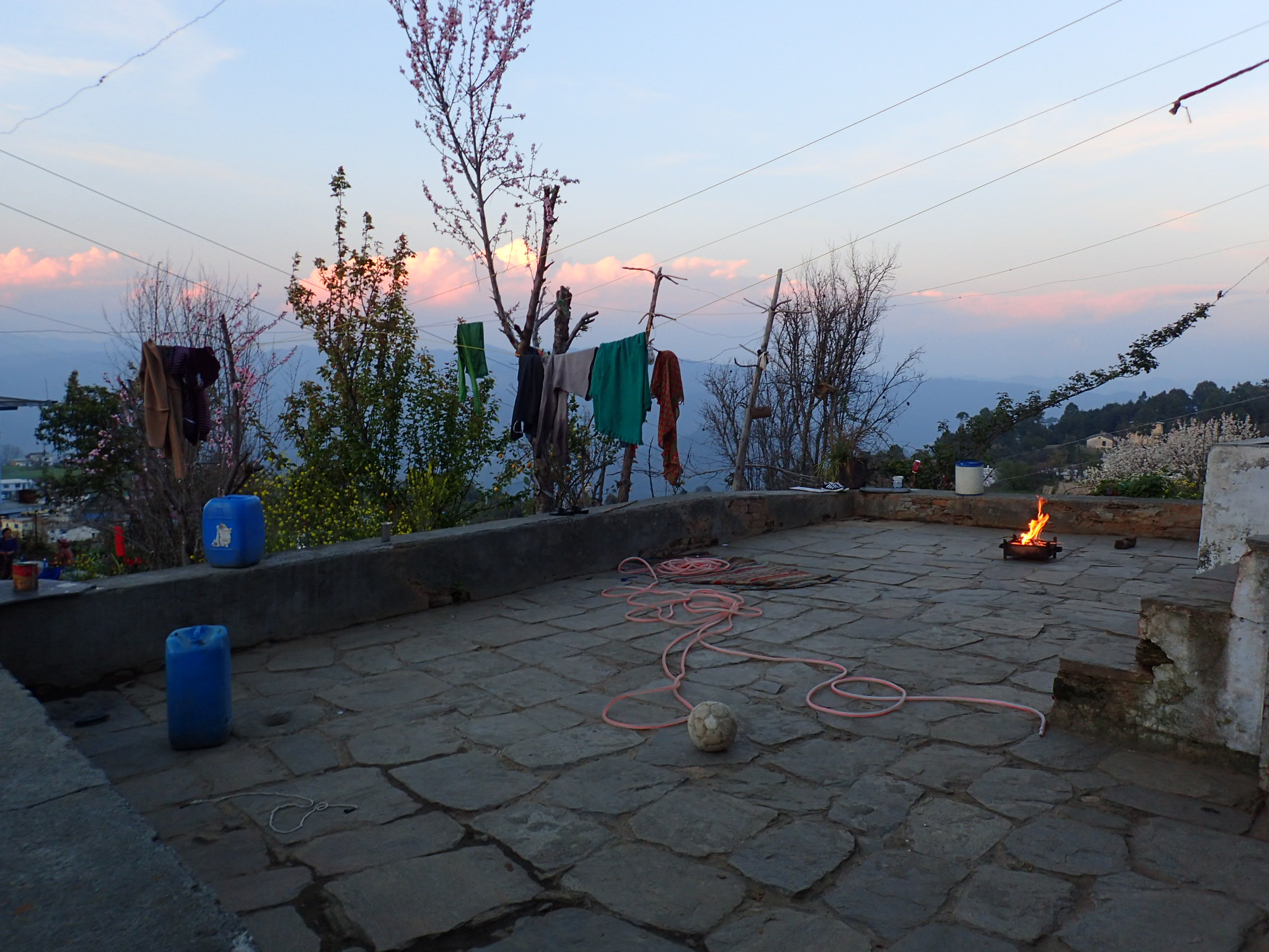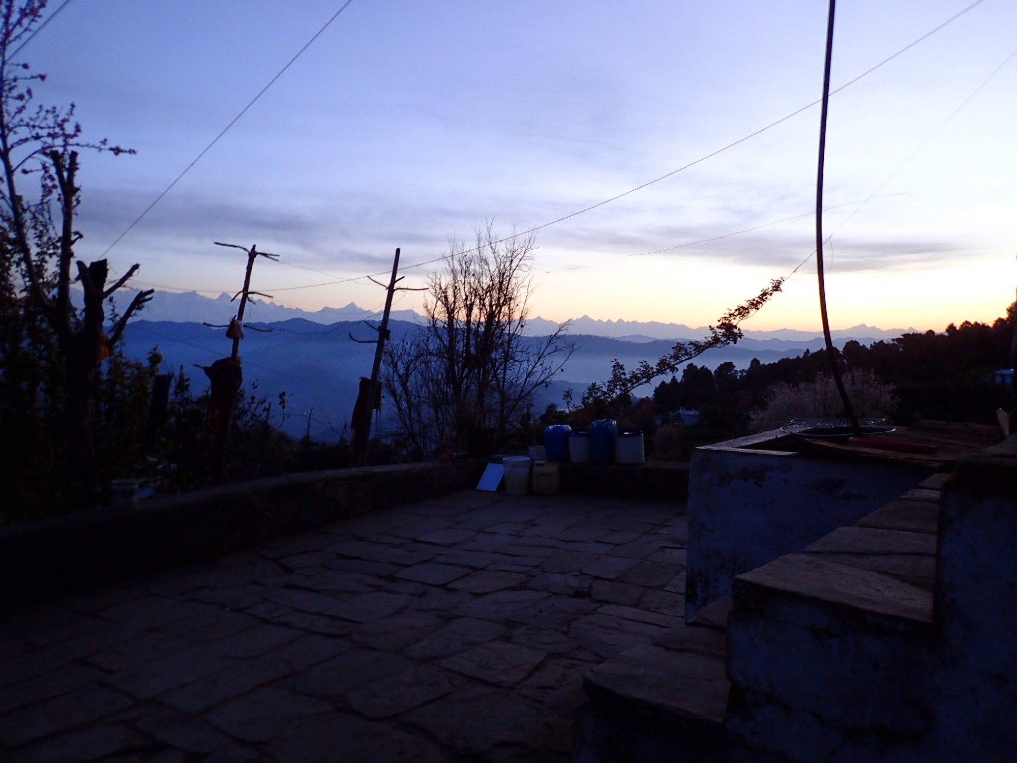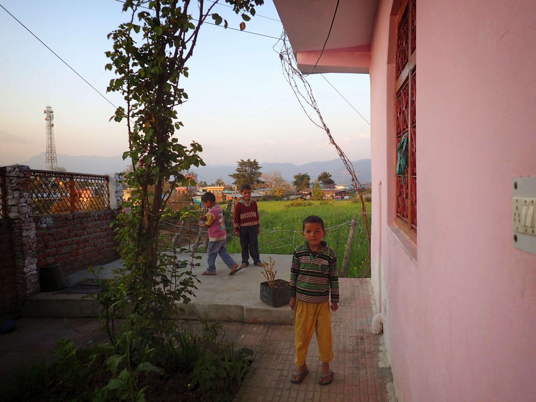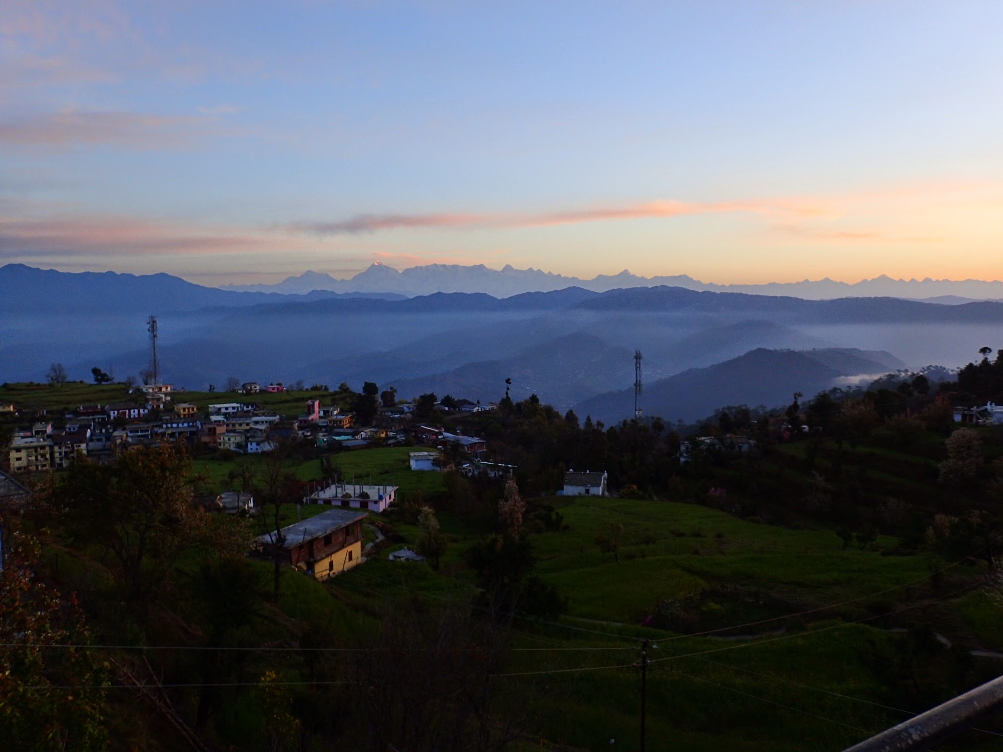 I climbed the stairs to the concrete roof, as the sun began its morning dance on the Himalaya’s. I had never seen mountains that tower like those. So ragged and jagged, it looked as if the gods chopped them angrily out of the earth. So tall, it seemed I could reach out over into the sky and touch them. They stood fully outlined, completely circling us, like women in burkas holding hands in front of the sun. The valleys and mountains reached south, clear as the ocean in their blue depths. Just for a moment, I could see exactly where the horizon dropped off like the earth was still flat, then clouds and mist filled the valleys.