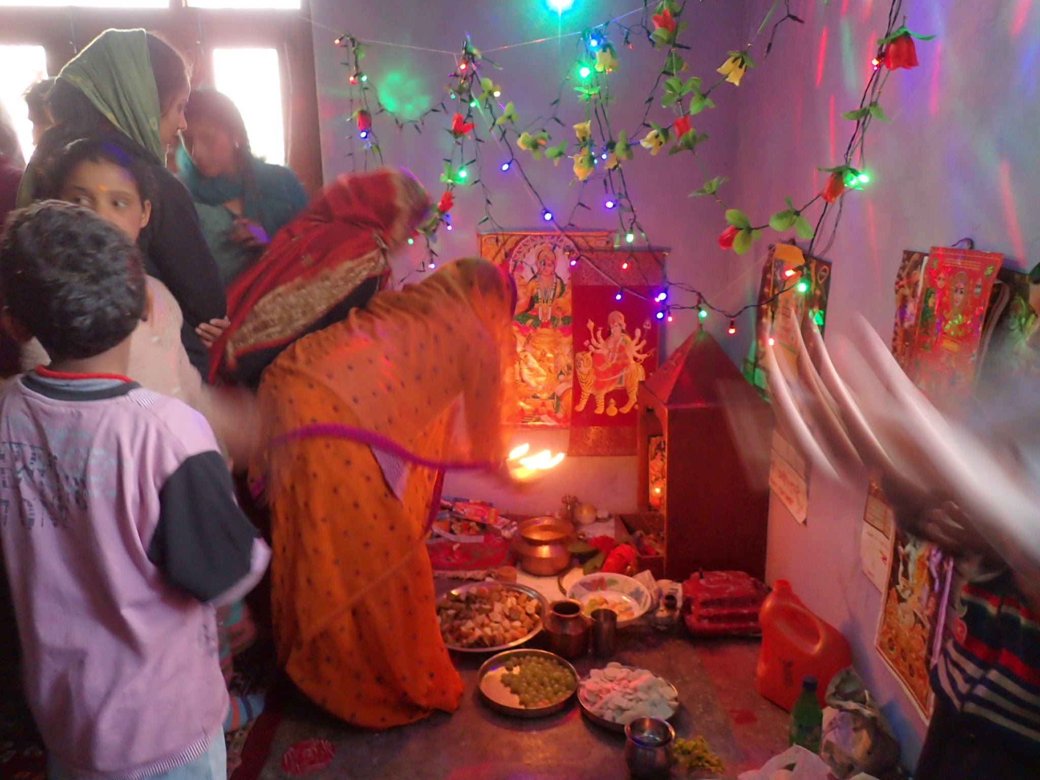 We walked into a small room full of the village women moving and clapping like a colorful kaleidoscope turning. Mantra’s beat through the air, their chanting feverish and lilting, they beat drums and shook bells, eyes closed, moving to some unknown force. I felt it though, the joy, coursing into the space and me.