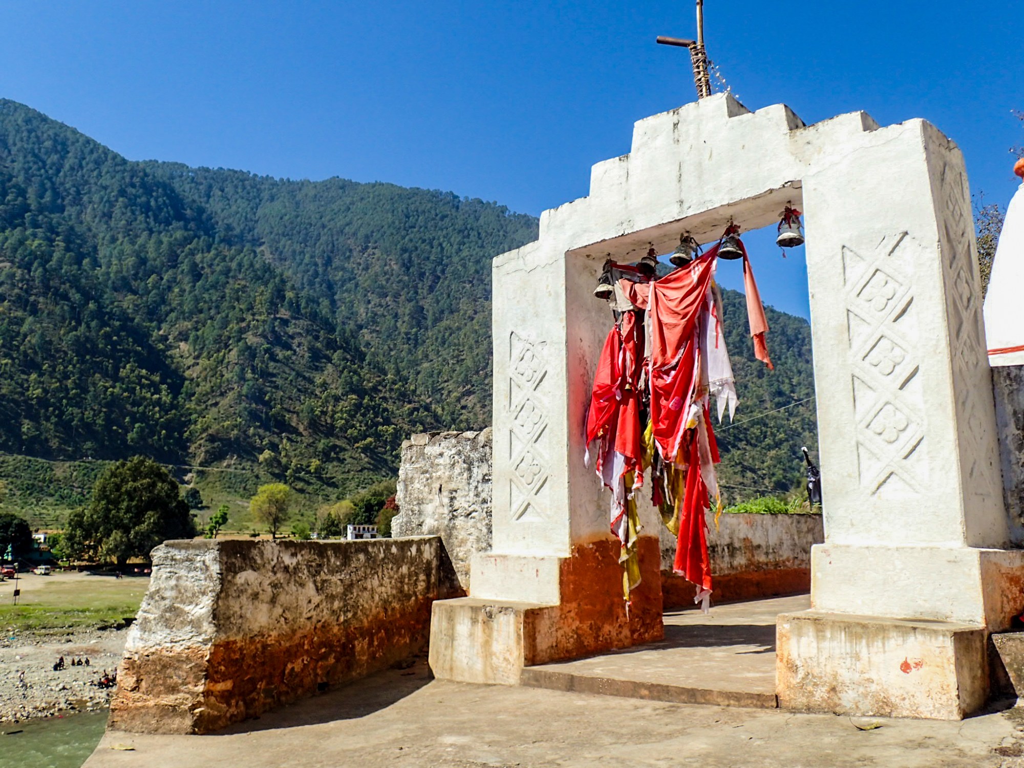The river ran into the Kali again after a few days, pushing its blue waters into the green Kali. A huge temple graced the banks of the confluence. In India river confluences are holy as are the rivers themselves.